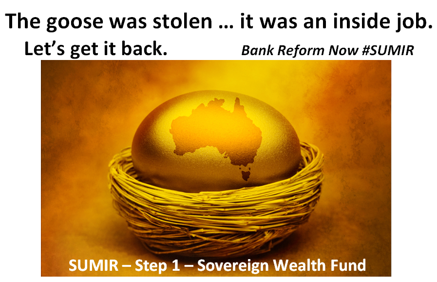 Many nations have a Sovereign Wealth Fund. There is no reason Australia can't have one which serves the nation's interests. Here we describe how it would look and how it would be funded. Including the repatriation of wealth stolen from the people by criminals aided and abetted by corrupt politicians. The problems allowing the theft to occur are systemic & structural and therefore so are the solutions.